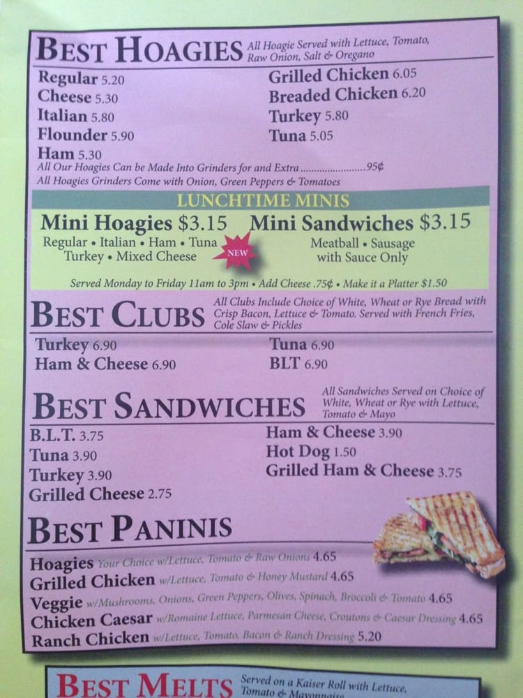 Introducing the menu at Aramingo's Best Pizza, a local gem in Philadelphia known for its delicious Italian fare. From mouthwatering appetizers like Boom Boom Bites and Homemade Mozzarella Triangles to satisfying salads such as Breaded Chicken Caesar and Green Salad with Breaded Chicken, the menu is sure to please. Their Trenton-style pizzas, like the Plain Pizza and Plain White Pizza, offer a unique twist with swirls of tomato sauce on top, creating different taste profiles with every bite. Customer reviews rave about the exceptional quality of the food, quick service, and friendly staff. Whether you're craving a classic slice of pizza or a flavorful sandwich, Aramingo's Best Pizza is a must-try spot for locals and visitors alike.